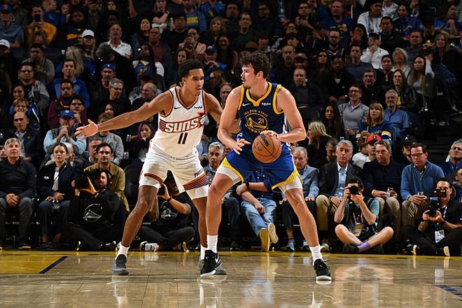 本场比赛中,勇士的先发中锋昆滕-波斯特(Quinten Post)的表现倒是有了显著的回暖。波斯特全场出场27分10秒,投篮7中5,三分线外6中4,得到了14分6篮板3助攻1抢断2盖帽的数据,还有1次失误和2次犯规,正负值为+16。波斯特在进攻端大杀四方,展现出了自己超强的投射能力,也是给对方制造了不小的威胁。不仅如此,他也是展现出了一定的传球能力和策应能力,他在进攻端的功能非常全面。除此之外,他在防守端的表现同样是可圈可点的,他在内线防守方面的表现也是超出大家预期的,他在本场比赛中竟然展现出了不错的内线防守能力。至少在本场比赛中,波斯特在攻防两端都起到了决定性的作用,他在场上时球队的局面也是一片大好,他也为球队的胜利做出了巨大的贡献,而且本场比赛也是波斯特本赛季至今表现最好的一场比赛。