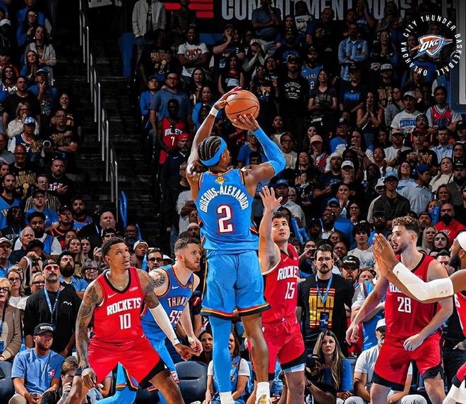 杜兰特则在攻防两端都展现了统治力,特别是在进攻端,他的单打能力为火箭提供了可靠的火力点,防守端也是换防所有位置,可惜体能确实差,但面对雷霆毕竟是高端局,杜兰特也想打更久。所以火箭最终惜败的原因主要归结于体能问题和控卫位置的空缺。缺少弗利特这样的组织核心,火箭在阵地战中显得吃力,更多依赖快速反击,而雷霆恰恰擅长应对这种节奏。在阵地战中,火箭的进攻主要依靠申京扮演组织核心,搭配杜兰特的单打。申京在本场比赛中的表现堪称惊艳,砍下39分11篮板7助攻2抢断1盖帽,三分球8投5中,展现了超巨级别的实力。