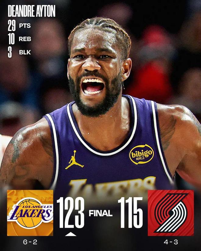 东詹里缺阵杨瀚森DNP 湖人3人20+胜开拓者